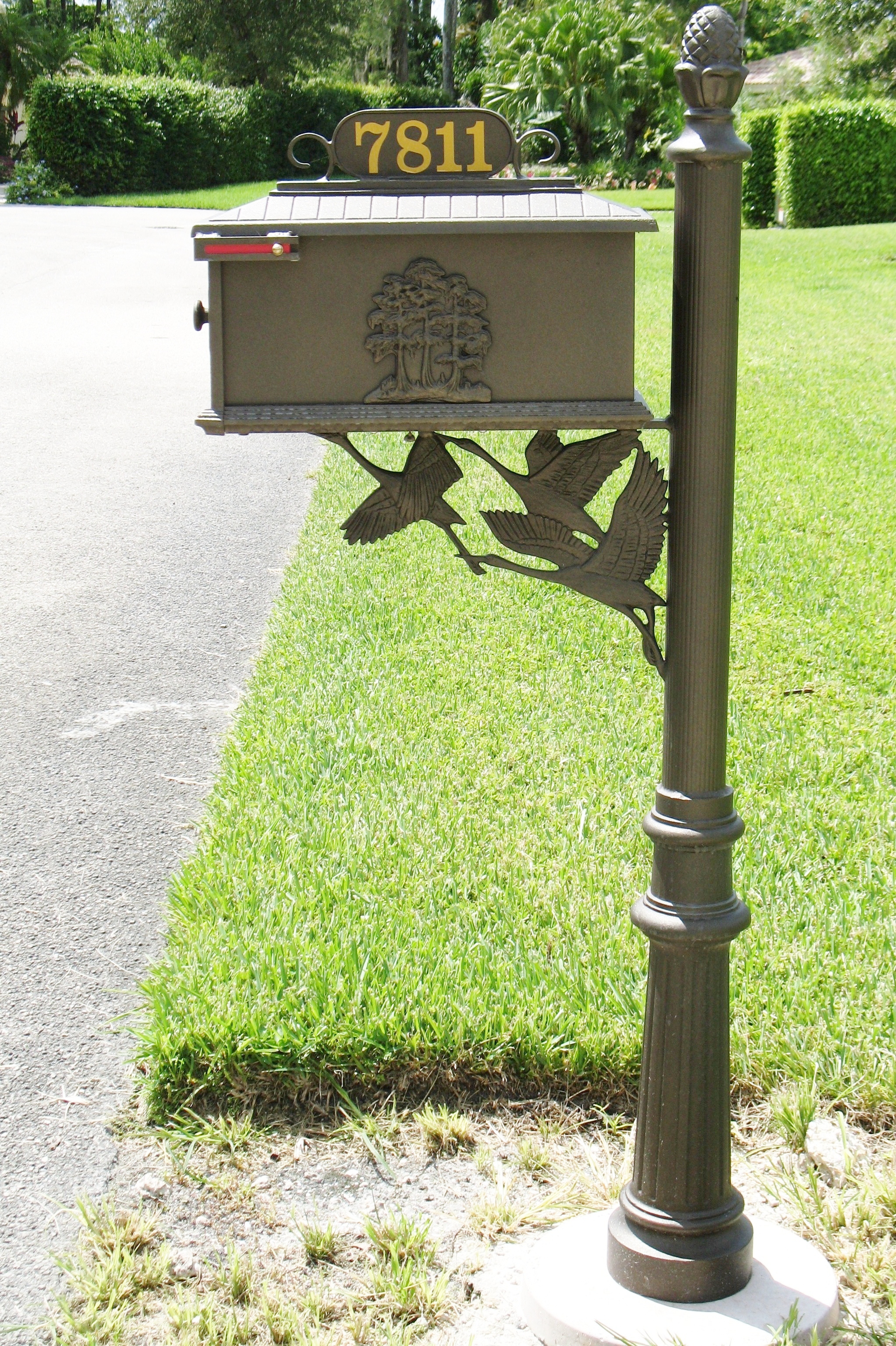 We provide sales and installation service of curbside mailboxes. Your community chooses to maximize curb appeal by using uniform mailboxes throughout the neighborhood. For additional curb appeal we feel it is our duty to install every mailbox with tight tolerances in distance and height from road grade. In our travels through HOA communities we see that some of our competitors install them inconsistently. We guarantee in writing to adhere to this superior installation procedure. Hiring the right installer can make a big difference in your project. Our products range from inexpensive to top of the line custom built products. We can match many existing designs and will upon request be your preferred vendor to keep your mailbox replacement parts in stock for immediate replacement. We also match design and paint for street signs and street lighting to our custom mailboxes. Custom sign printing service is also available. All of our Proposals include installation procedure and warranty.